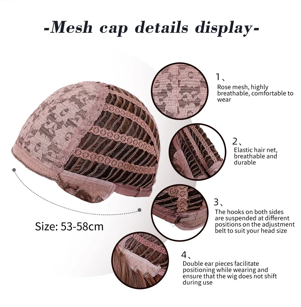 【Adjustable Wig Cap】Two straps inside the wig cap that can be adjusted to 21-23 inch.